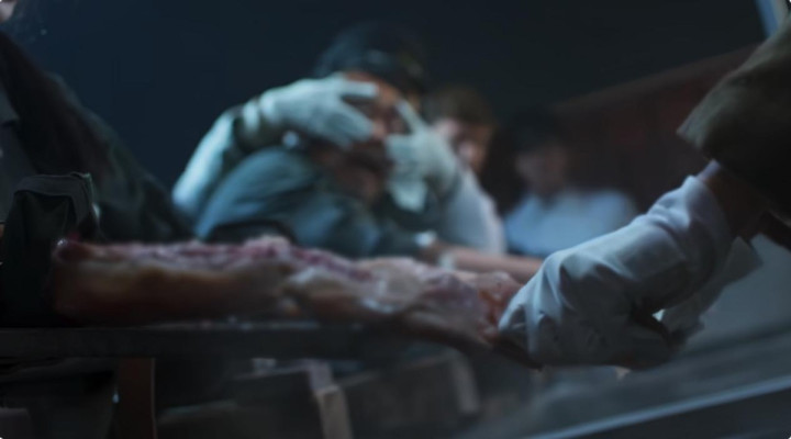 冻伤实验中,人在极端低温中,肢体表皮出现裂开、变色、抽搐,肌肉与血液反应,以及被迫在如此环境中持续受苦的絕望,这是视觉与生理双重折磨。