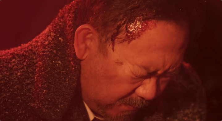 高潮的部分开始铺垫推进,电影的画面压抑感加重,镜头越来越“躁动”,画面中的暴行,音效里的鼓点处处透着让人不安的细节。